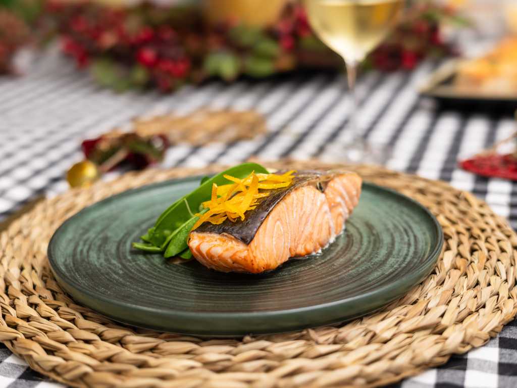 Disfruta de nuestro Salmón confitado a la naranja, una propuesta elegante y llena de matices pensada para sorprender en cualquier celebración.
